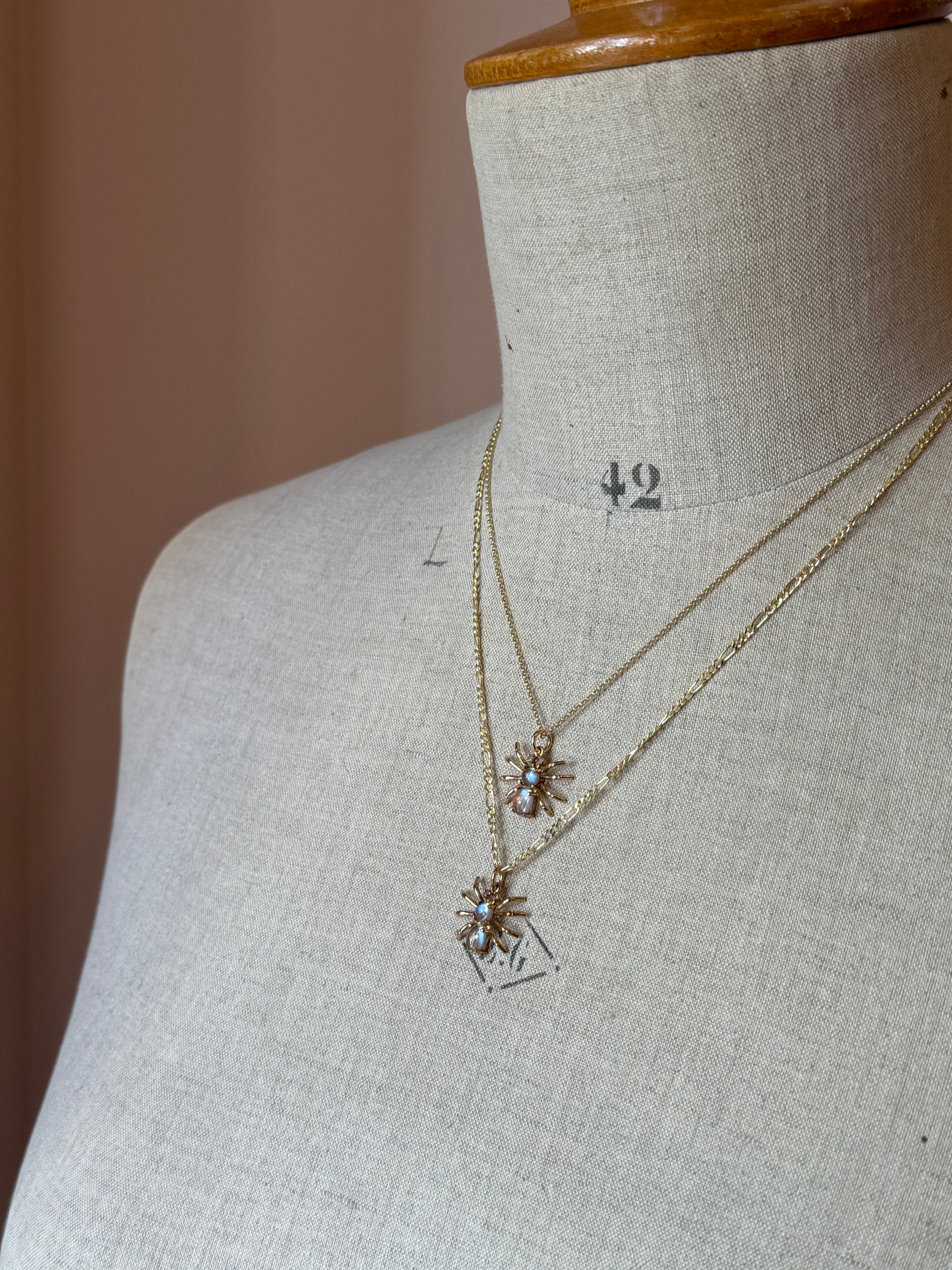 The spider - patient and creative, weaves its own path and the moonstone is long cherished for its protective and intuitive energy. Together they make the most magical talisman of creativity and protection.