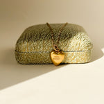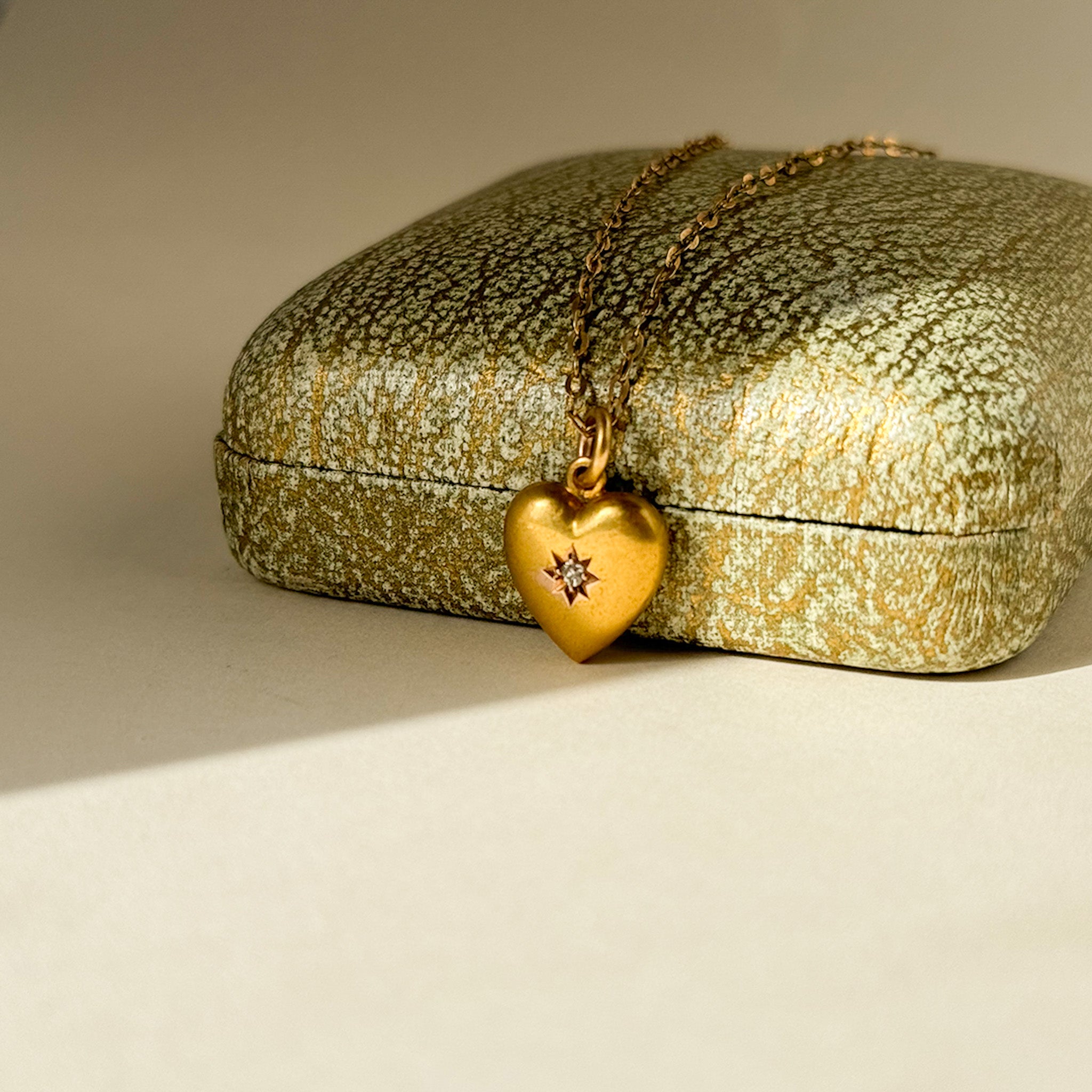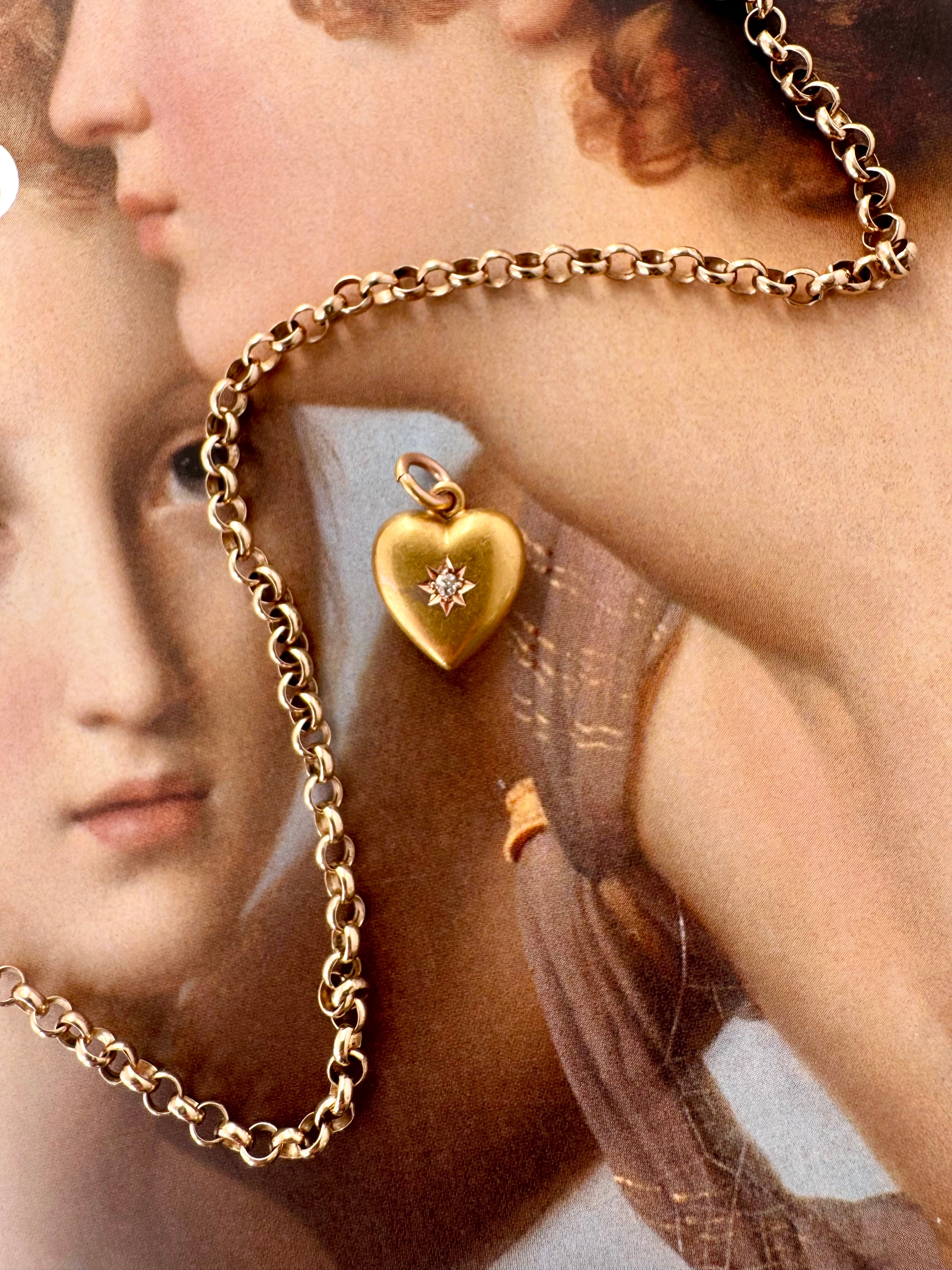 A beautifully romantic pendant charm that’s crafted in a wonderful bright, buttery yellow hue of 15ct gold. The heart has a lovely puffy hollow shape and a classic simplicity to it with the central diamond set into a star engraved setting.