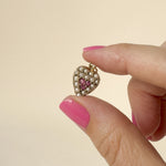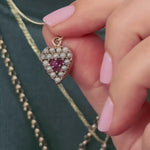 The most beautiful Victorian heart pendant charm and chain in 9ct gold set with pearls and rubies. A stunning piece to treasure and wear close to you everyday.