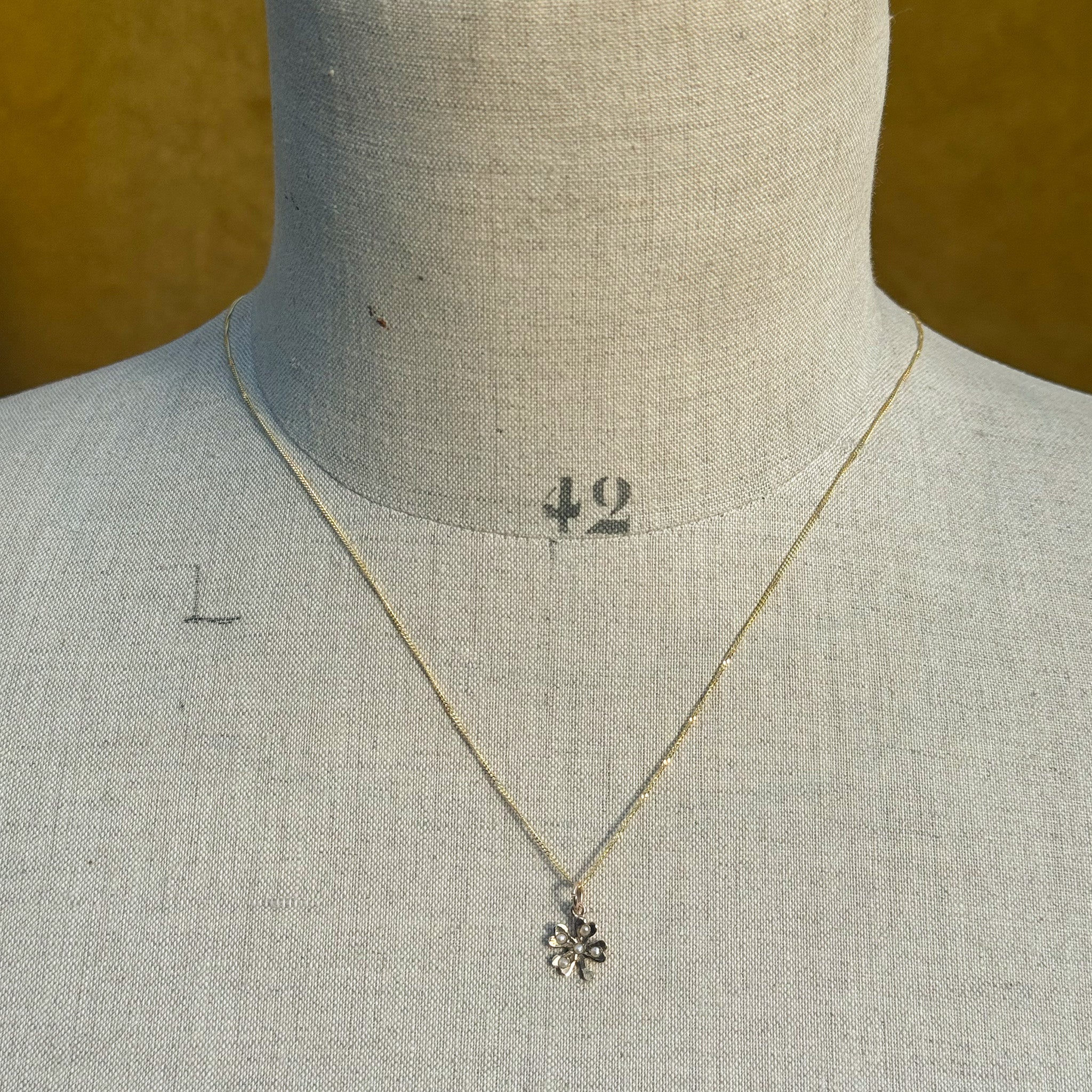 Vintage Tiny Pearl Clover Charm, 9ct Gold