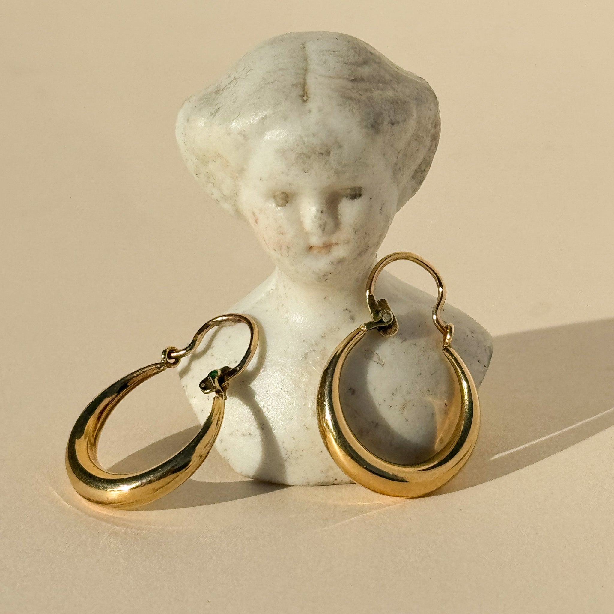 9ct gold vintage hoops that are a wonderful everyday earring. Simple and moon shaped they’re a classic must-have.