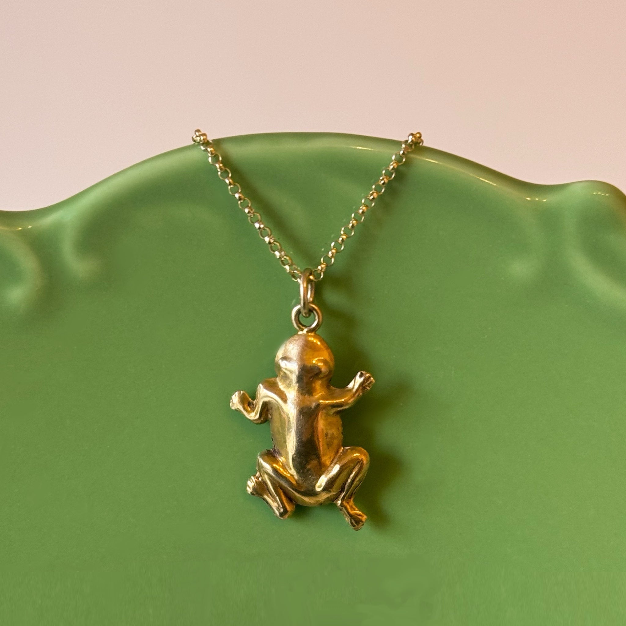 A cheery vintage frog charm in 9ct gold. He has a lovely sculptural feel about him with soft, strokable details.