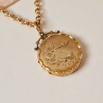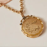 A wonderful Victorian locket in beautiful condition. This locket is just full of lovely details. With two different engraved scenes on each side of the locket, they both feature beautifully designed swifts and a sweet floral decoration. The Swifts which were popular motifs in the Victorian period symbolised love and protection and were used to convey the sentiment to ‘return home safely’- just like the bird.