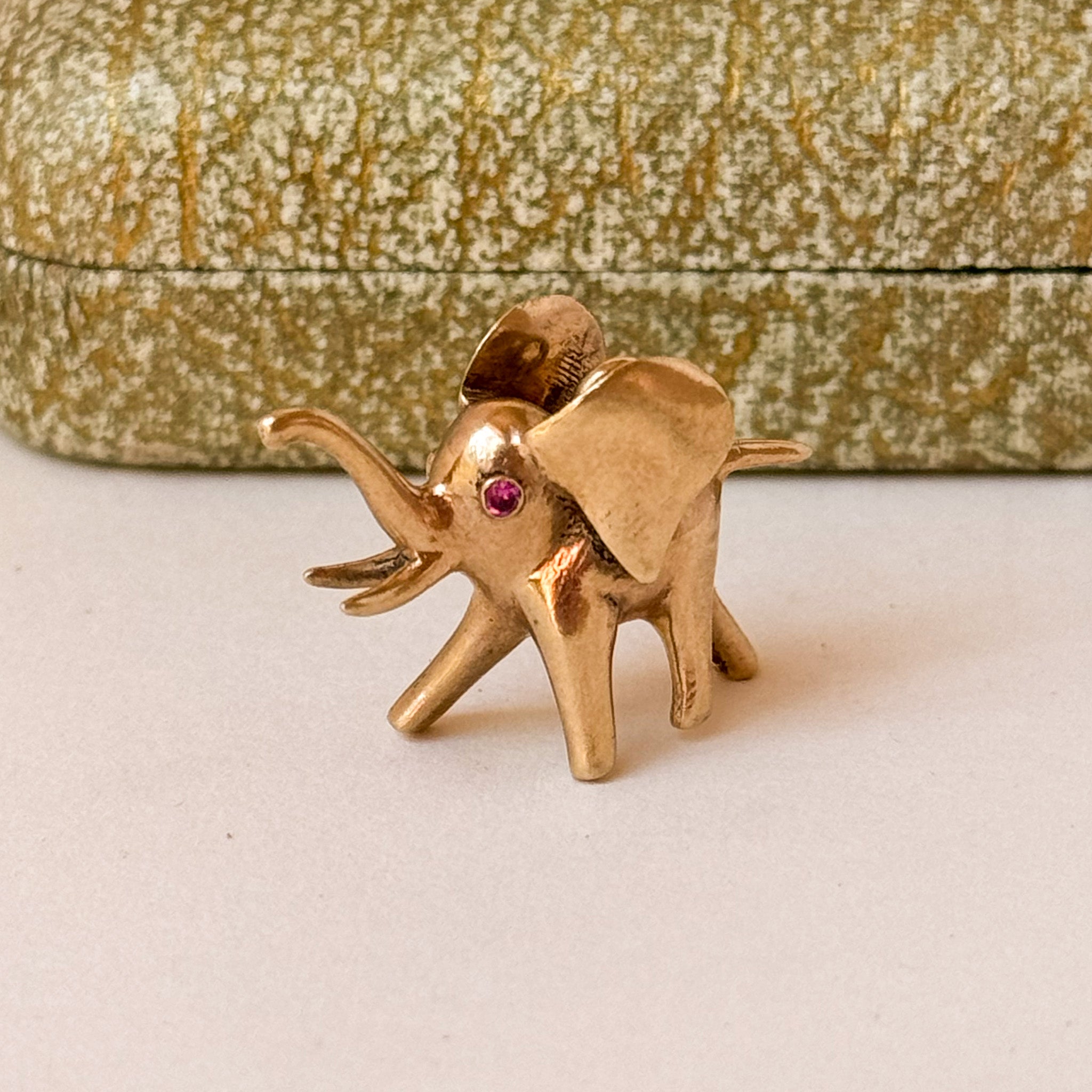 A beautiful vintage 9ct gold lucky elephant charm set with Ruby eyes. Designed by Hans Georg Mautner circa 1950s