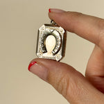 Dimensions: locket width 19mm x 24mm length. Total depth of the locket is 8mm, including the raised horseshoe.