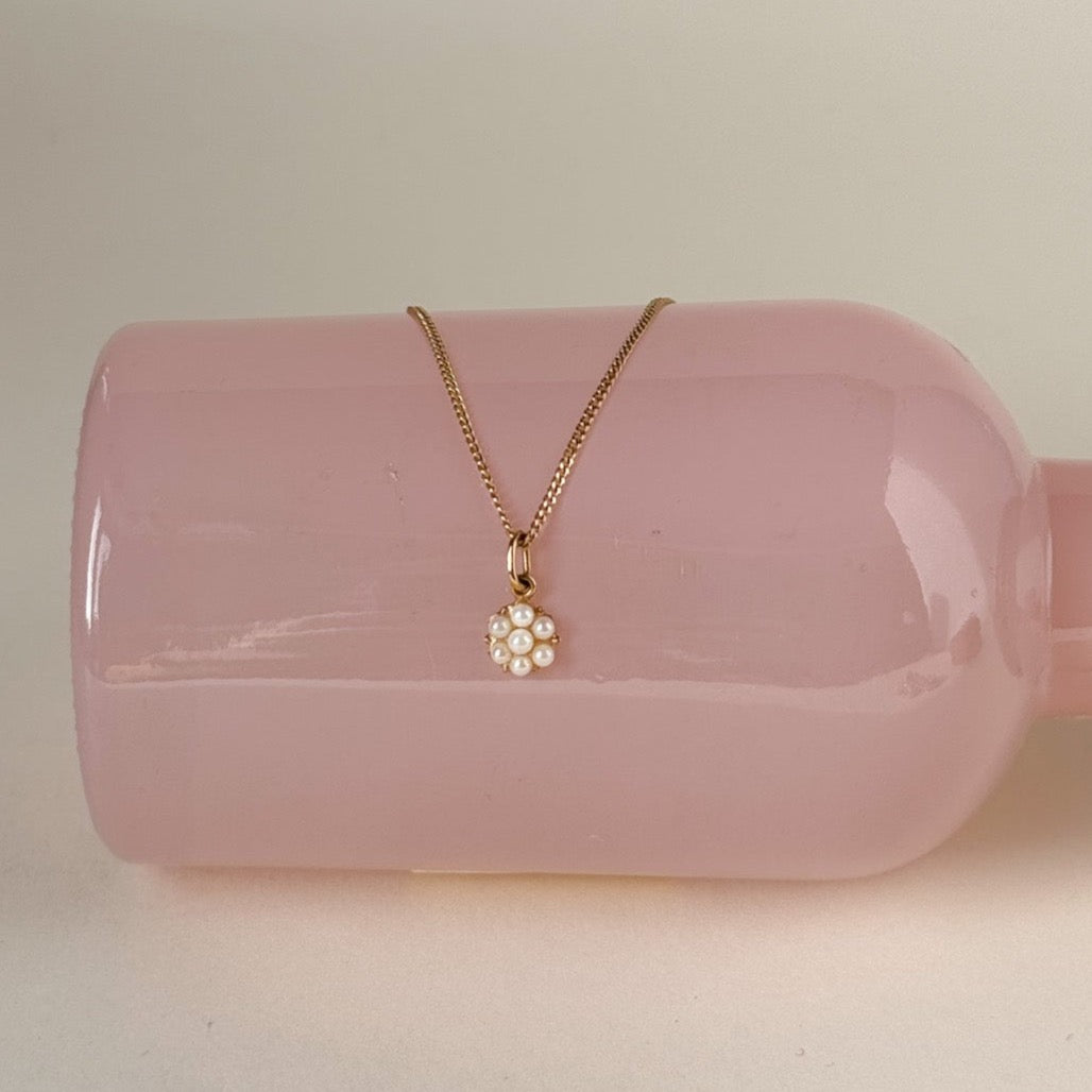 The sweetest little vintage pearl flower pendant. A lovely all day, everyday piece that can be worn with other necklaces or simply on its own.